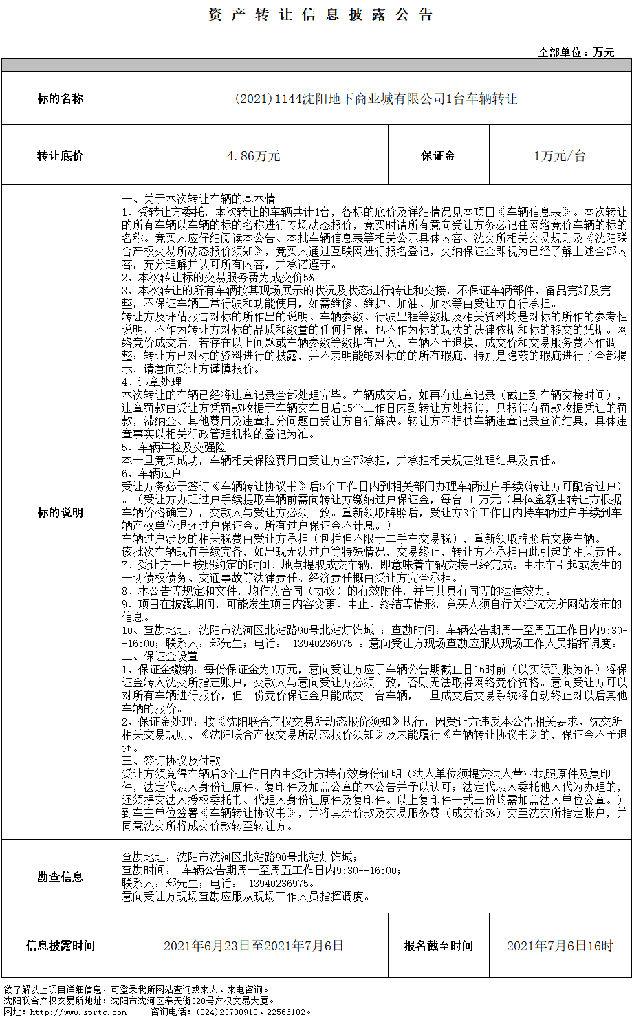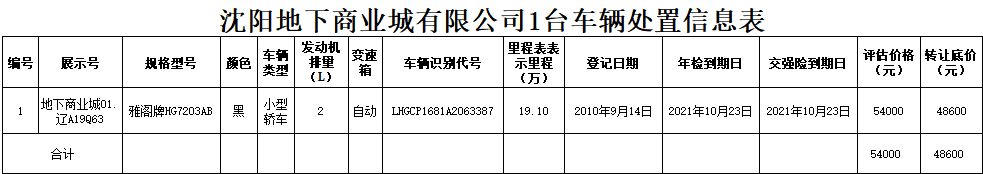 沈陽地下商業(yè)城1臺車輛轉(zhuǎn)讓