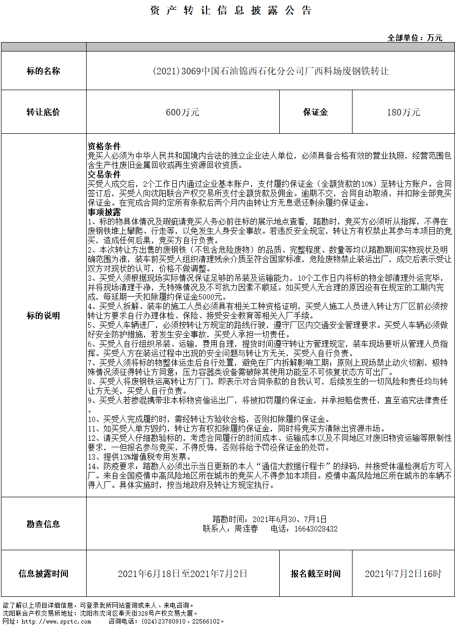 中國(guó)石油錦西石化分公司廠西料場(chǎng)廢鋼鐵轉(zhuǎn)讓