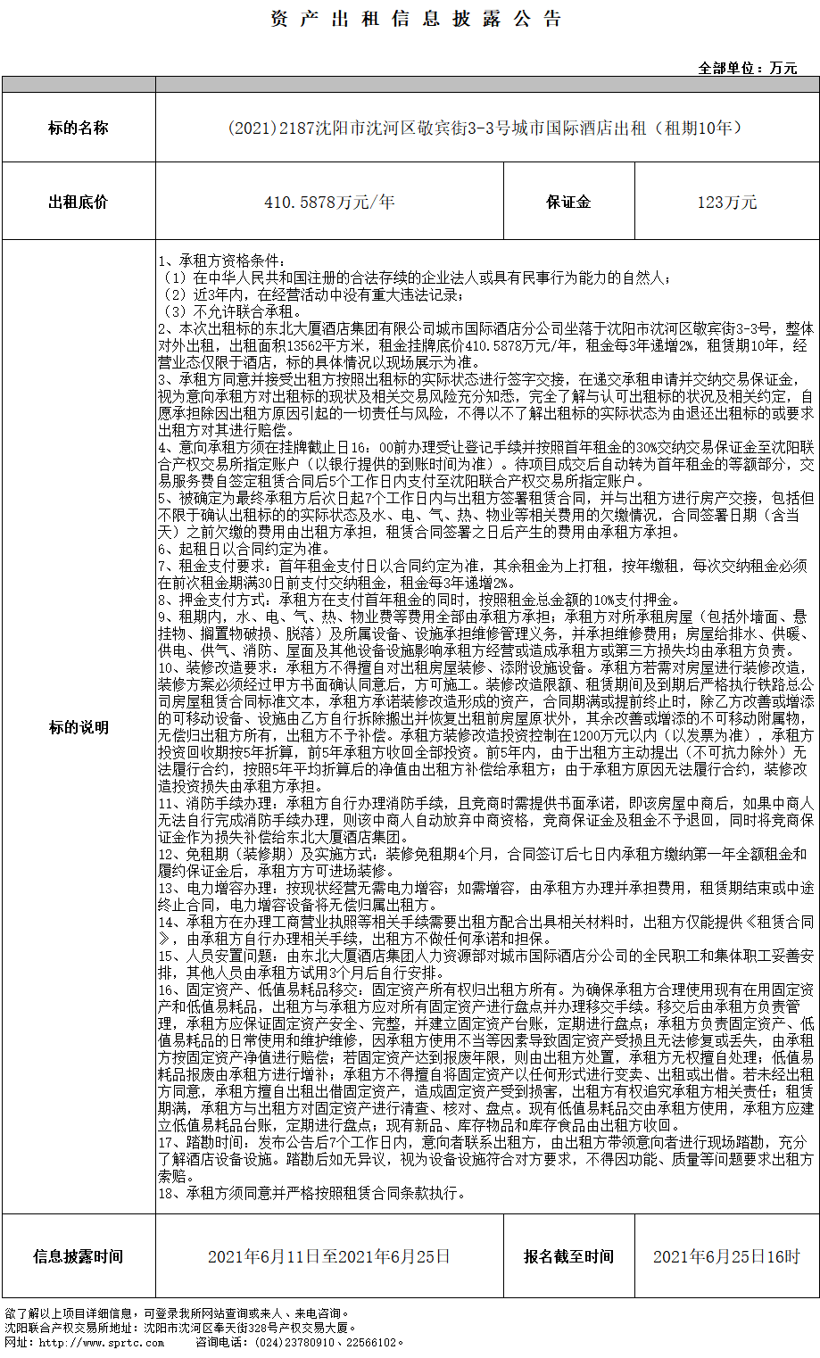沈陽市沈河區(qū)敬賓街3-3號城市國際酒店出租(租期10年)