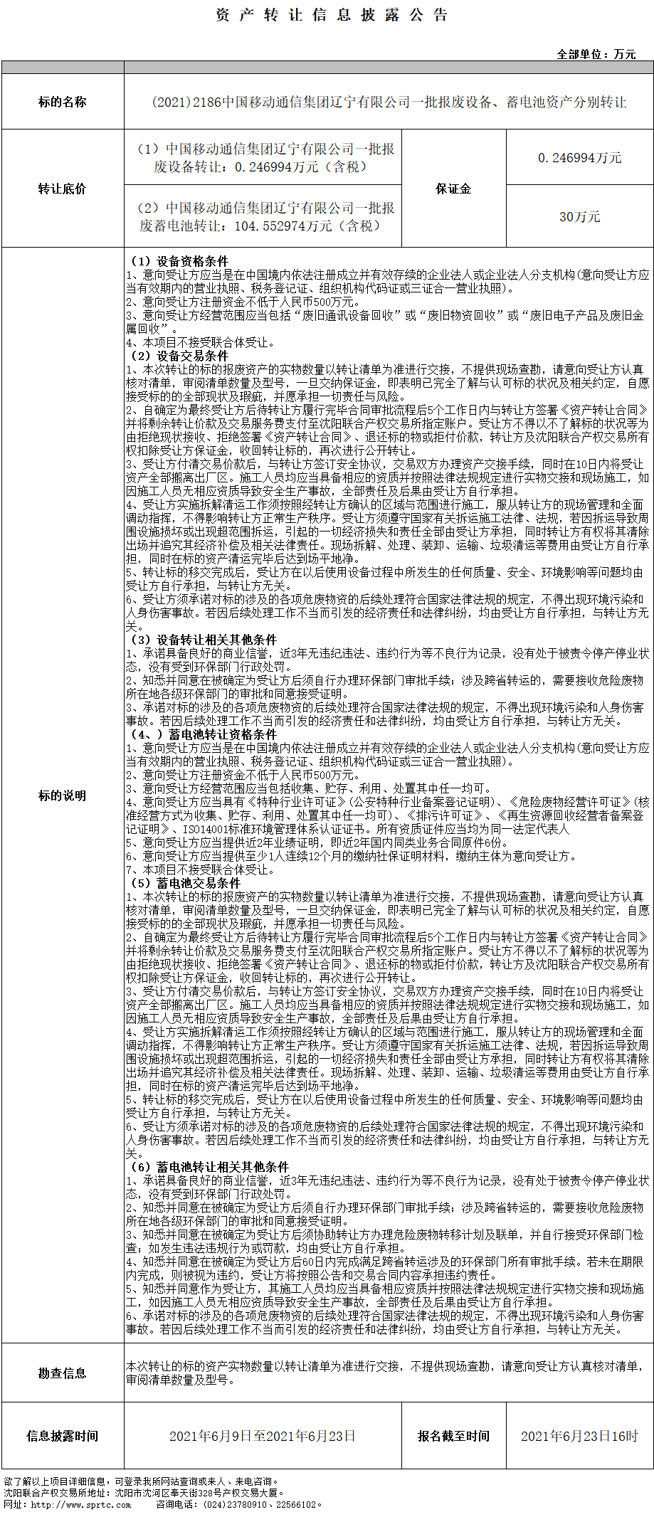 中國(guó)移動(dòng)通信集團(tuán)遼寧有限公司一批報(bào)廢設(shè)備轉(zhuǎn)讓