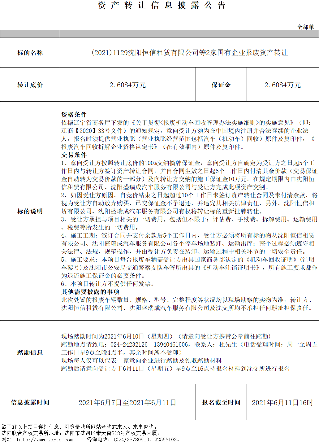 項(xiàng)目鏈接:沈陽(yáng)恒信租賃有限公司等2家國(guó)有企業(yè)報(bào)廢資產(chǎn)轉(zhuǎn)讓。