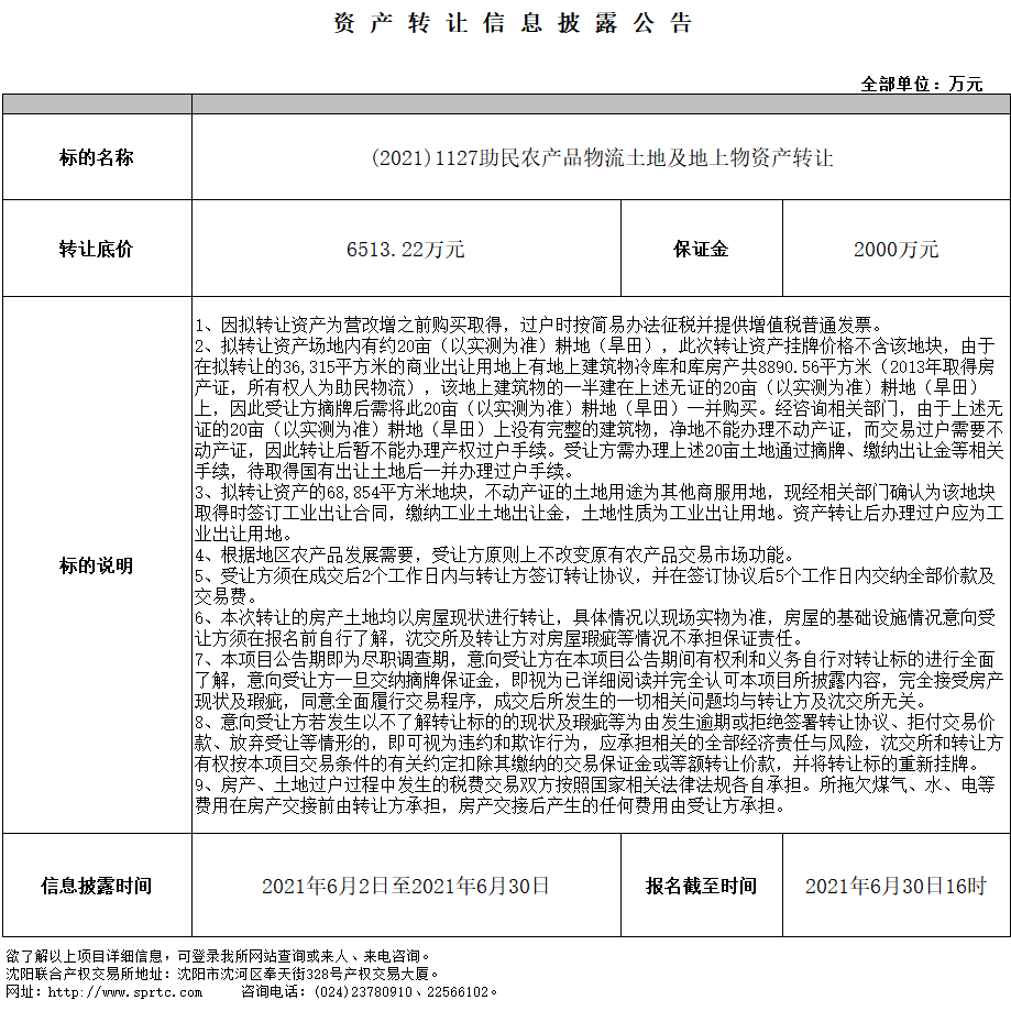 助民農(nóng)產(chǎn)品物流土地及地上物資產(chǎn)轉(zhuǎn)讓