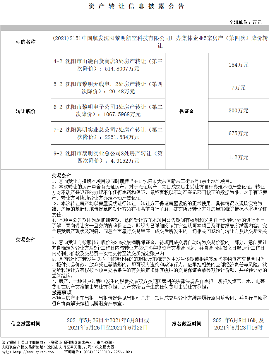 7-2 沈陽(yáng)黎明實(shí)業(yè)總公司7處房產(chǎn)轉(zhuǎn)讓(第二次降價(jià))