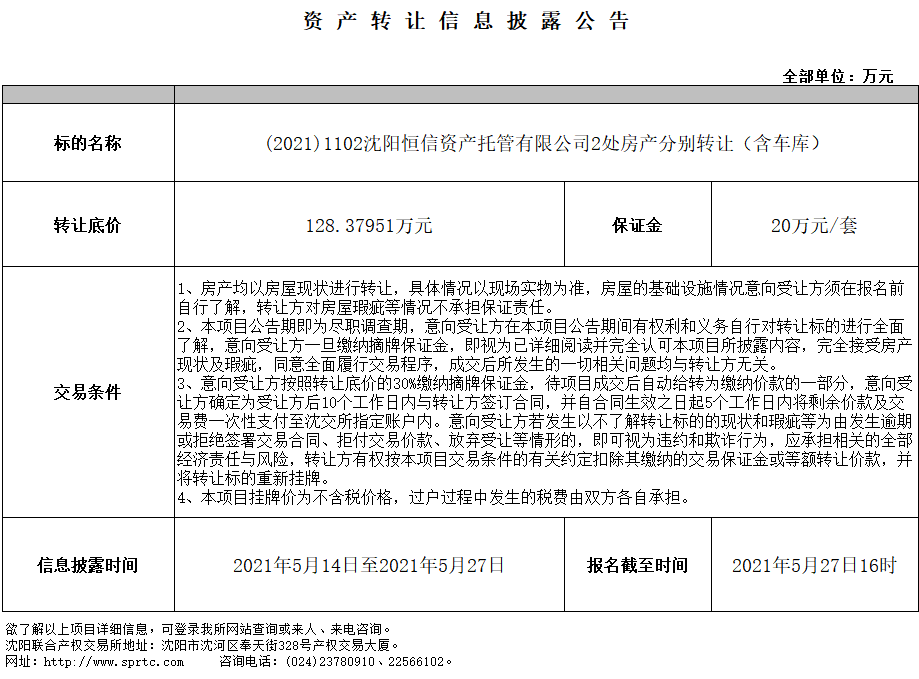 沈北新區(qū)沈北路186-19號(hào)(4-3-2)房產(chǎn)及15門車庫捆綁轉(zhuǎn)讓