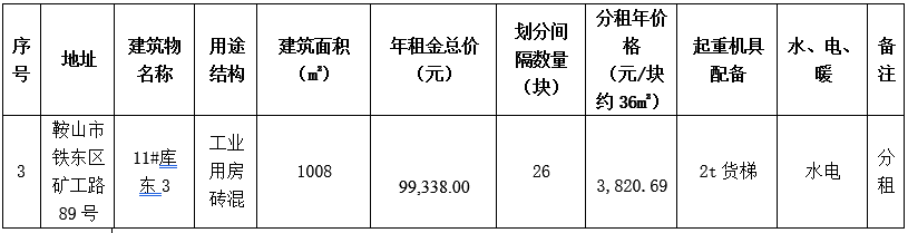 鞍鋼股份有限公司設(shè)備資材采購中心11號庫東3-1號出租