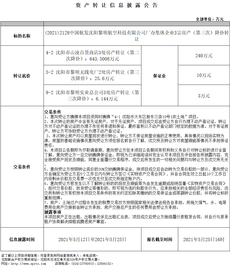 9-2 沈陽市黎明實(shí)業(yè)總公司3處房產(chǎn)轉(zhuǎn)讓(第三次降價(jià))