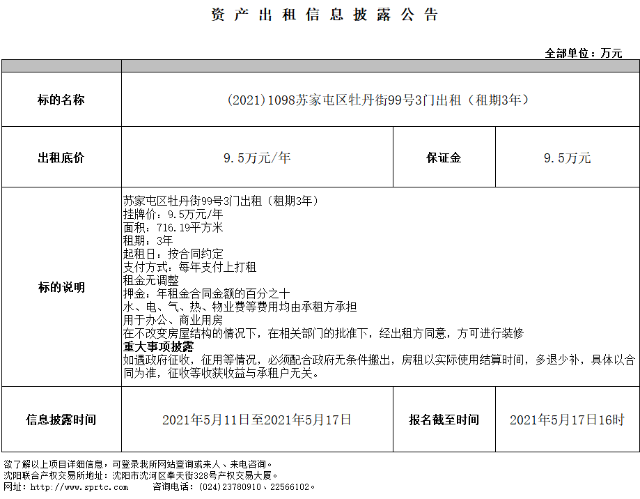 蘇家屯區(qū)牡丹街99號(hào)3門出租(租期3年)