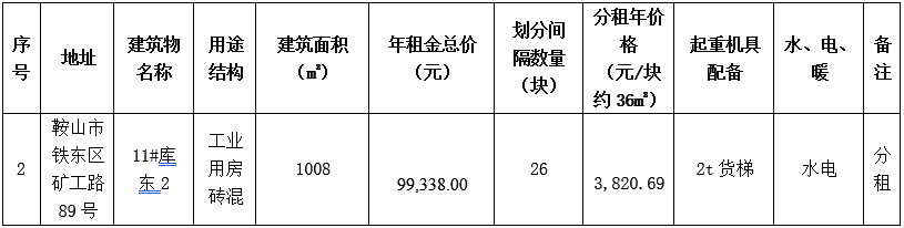 鞍鋼股份有限公司設(shè)備資材采購中心11號庫東2-3號出租