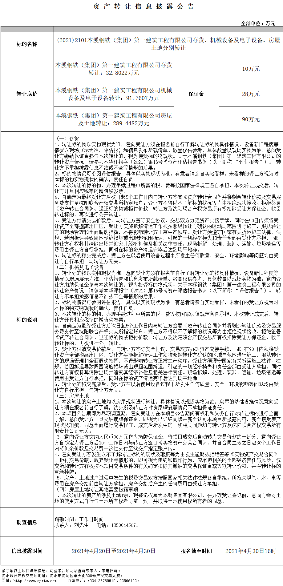 本溪鋼鐵(集團(tuán))第一建筑工程有限公司存貨轉(zhuǎn)讓