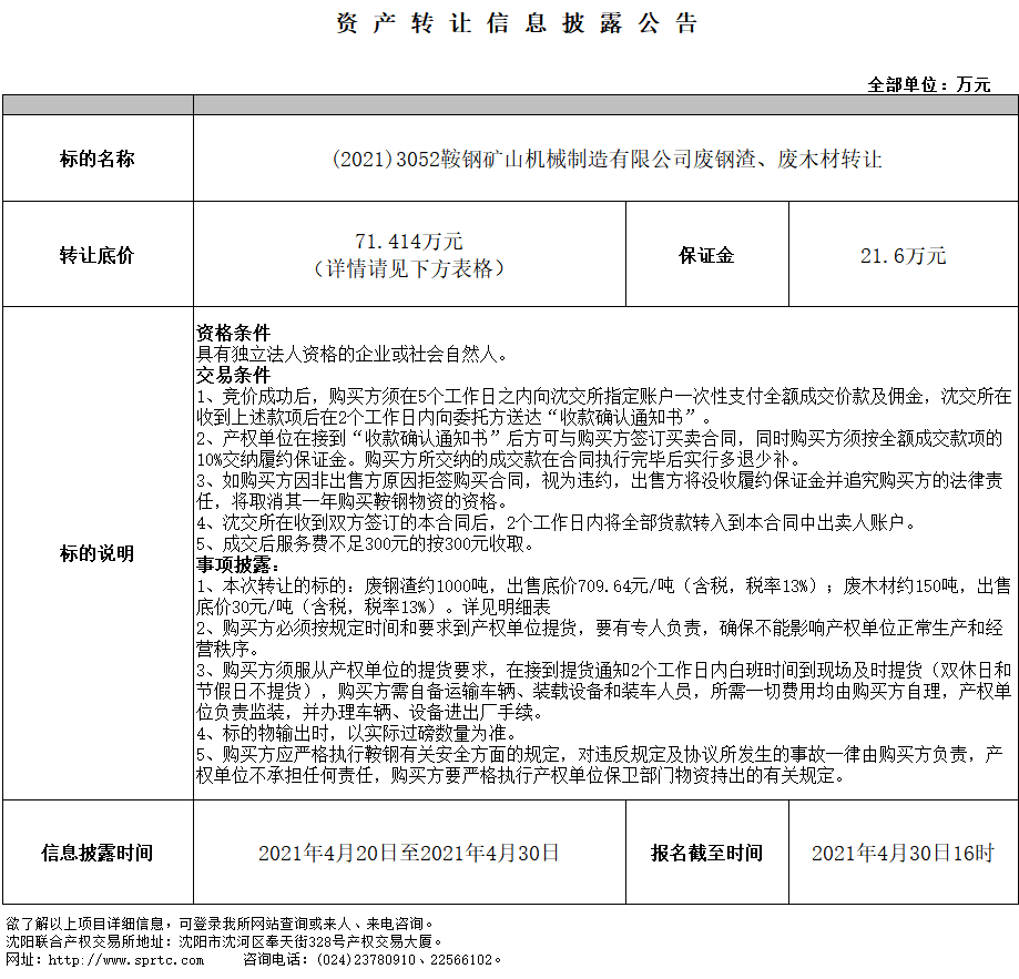 鞍鋼礦山機械制造有限公司廢木材轉讓