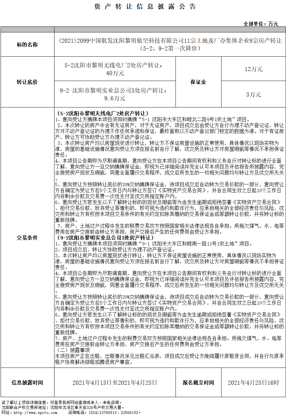 5-2 沈陽(yáng)市黎明無線電廠2處房產(chǎn)(第一次降價(jià))轉(zhuǎn)讓