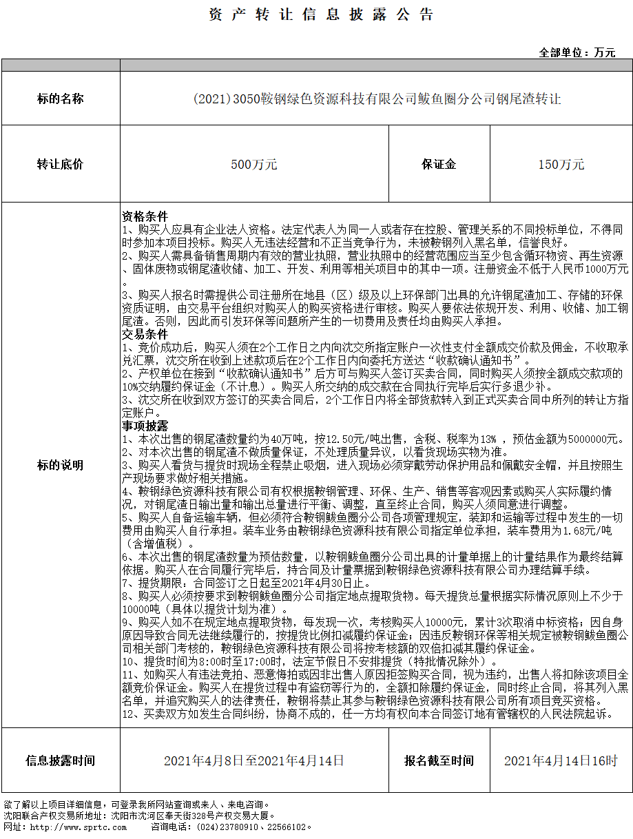 鞍鋼綠色資源科技有限公司鲅魚圈分公司鋼尾渣轉(zhuǎn)讓