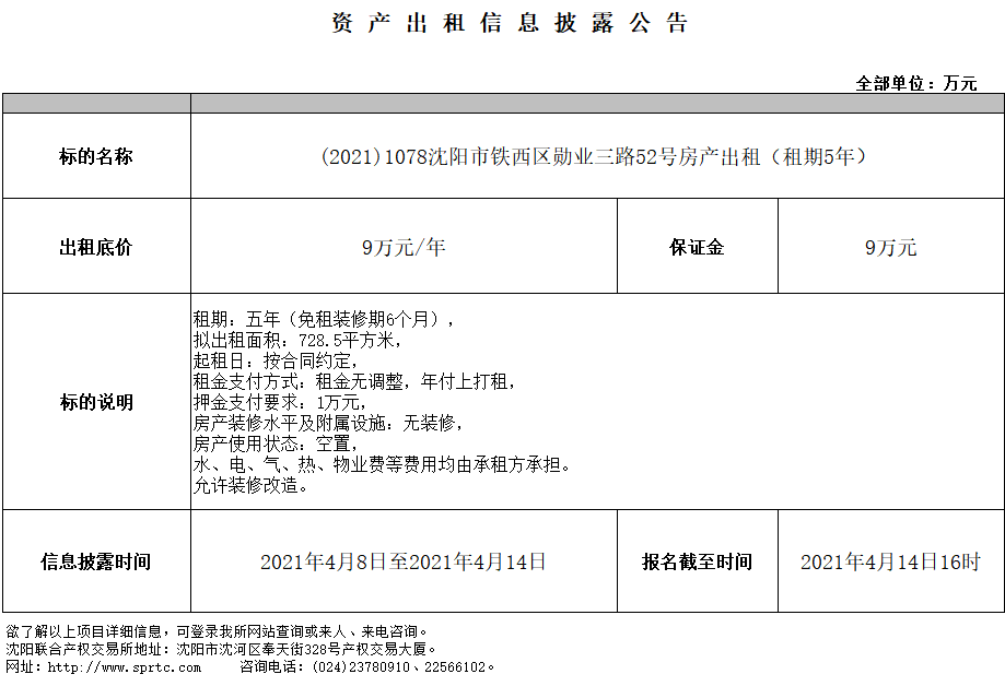 沈陽市鐵西區(qū)勛業(yè)三路52號房產(chǎn)出租(租期五年)