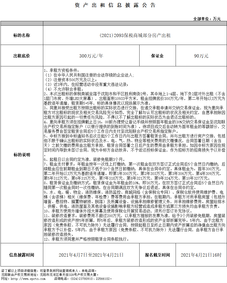 保稅商城部分房產(chǎn)出租(租期5+5年)