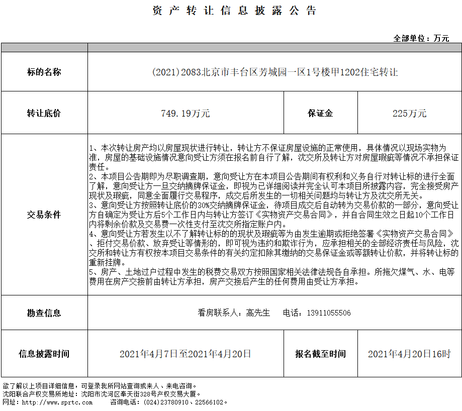 北京市豐臺區(qū)芳城園一區(qū)1號樓甲1202住宅轉(zhuǎn)讓