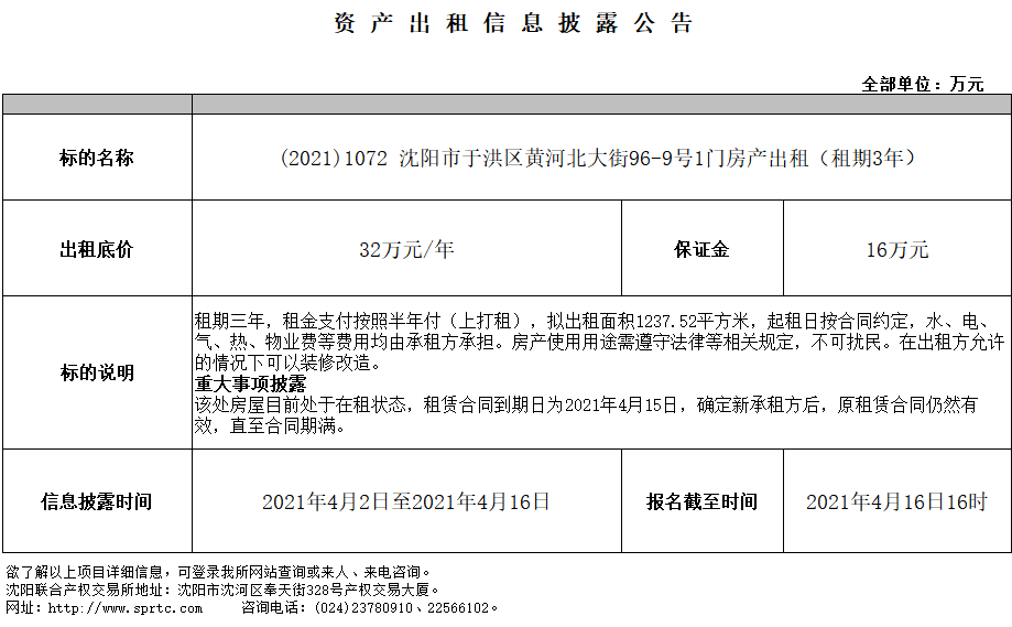 沈陽市于洪區(qū)黃河北大街96-9號1門房產(chǎn)出租(租期三年)
