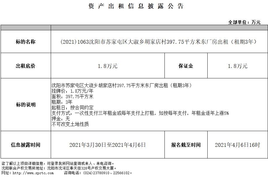 沈陽(yáng)市蘇家屯區(qū)大淑鄉(xiāng)胡家店村397.75平方米東廠(chǎng)房出租(租期3年)