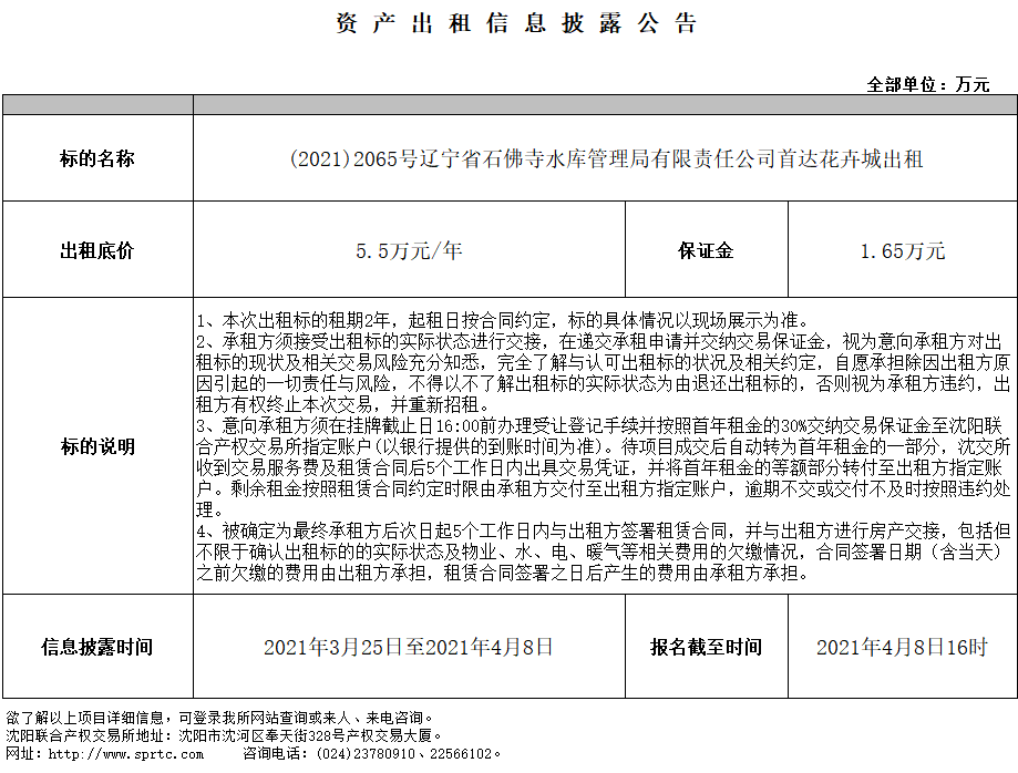 遼寧省石佛寺水庫管理局有限責(zé)任公司首達(dá)花卉城降價出租