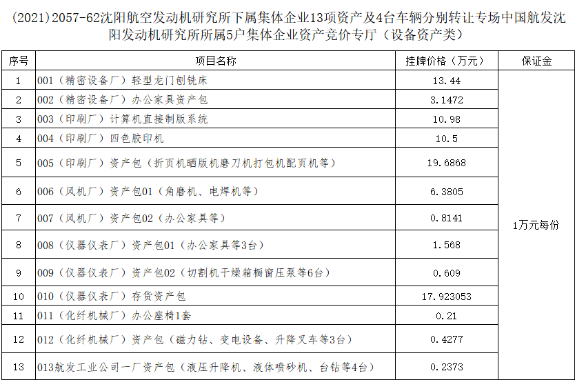 013航發(fā)工業(yè)公司一廠資產(chǎn)包(液壓升降機(jī)、液體噴砂機(jī)、臺(tái)鉆等4臺(tái))