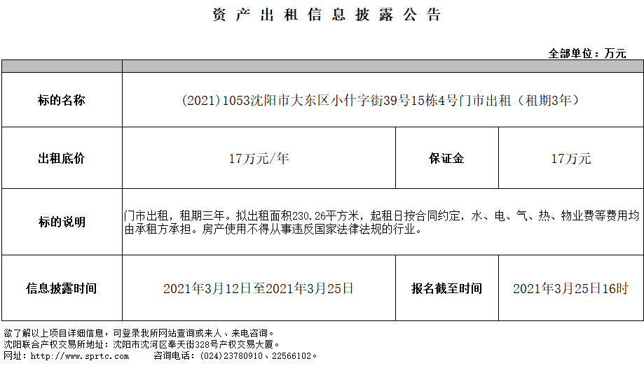 沈陽市大東區(qū)小什字街39號15棟4號門市出租(租期3年)