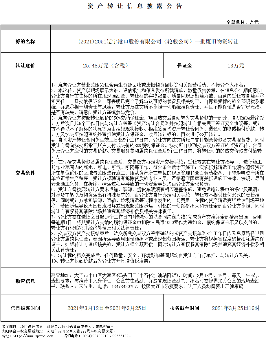 遼寧港口股份有限公司(輪駁公司)一批廢舊物資轉(zhuǎn)讓
