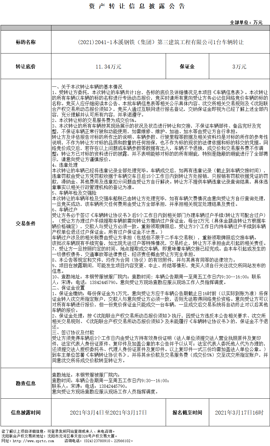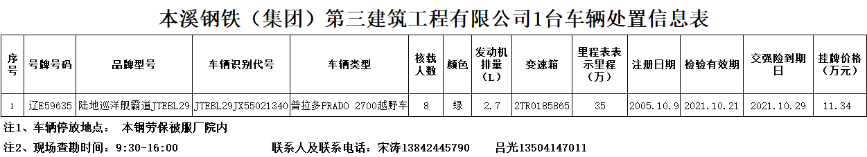 本溪鋼鐵(集團(tuán))第三建筑工程有限公司1臺車輛 轉(zhuǎn)讓