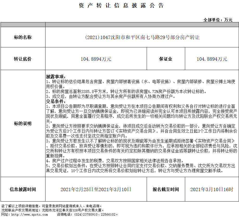 沈陽市和平區(qū)南七馬路29號部分房產(chǎn)轉(zhuǎn)讓