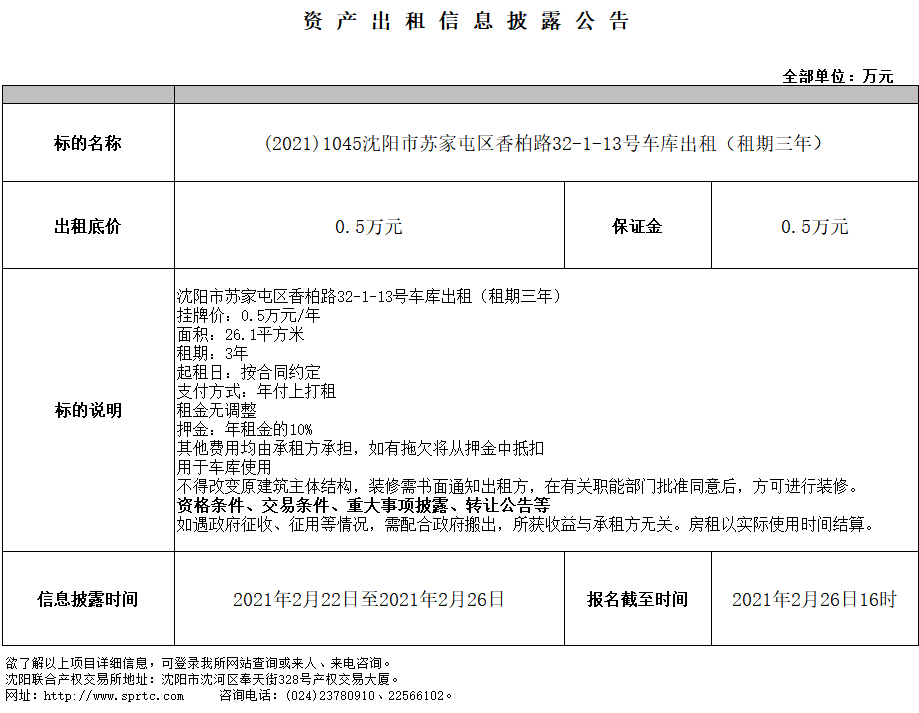 沈陽(yáng)市蘇家屯區(qū)香柏路32-1-13號(hào)車庫(kù)出租(租期三年)