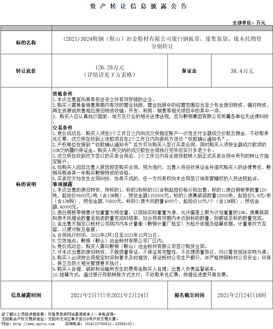 鞍鋼(鞍山)冶金粉材有限公司廢白鋼板帶轉(zhuǎn)讓