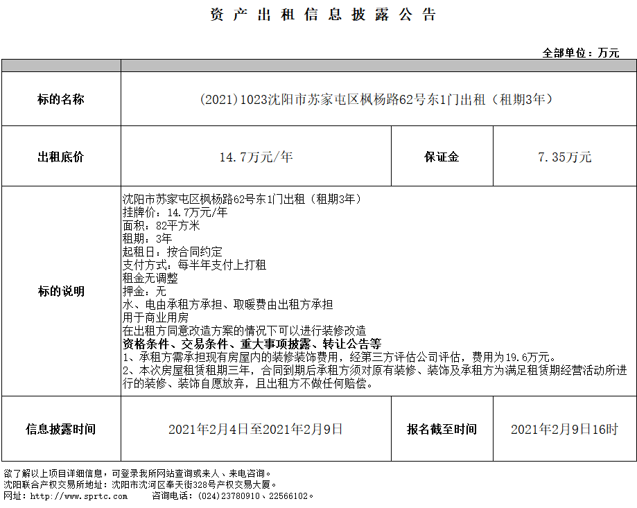 沈陽(yáng)市蘇家屯區(qū)楓楊路62號(hào)東1門(mén)出租(租期3年)