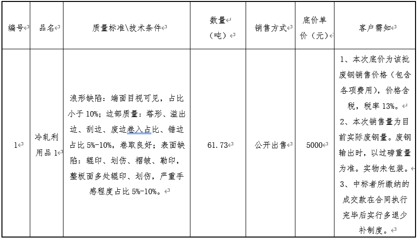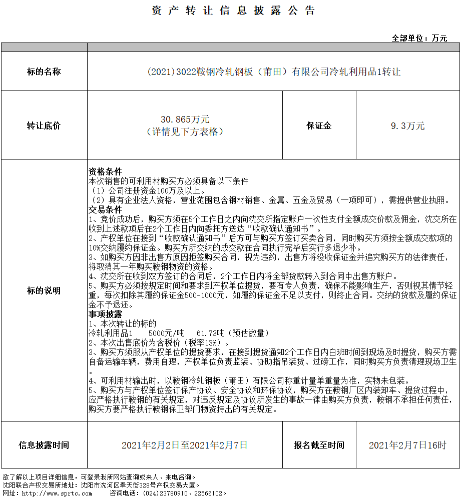 鞍鋼冷軋鋼板(莆田)有限公司冷軋利用品1轉讓