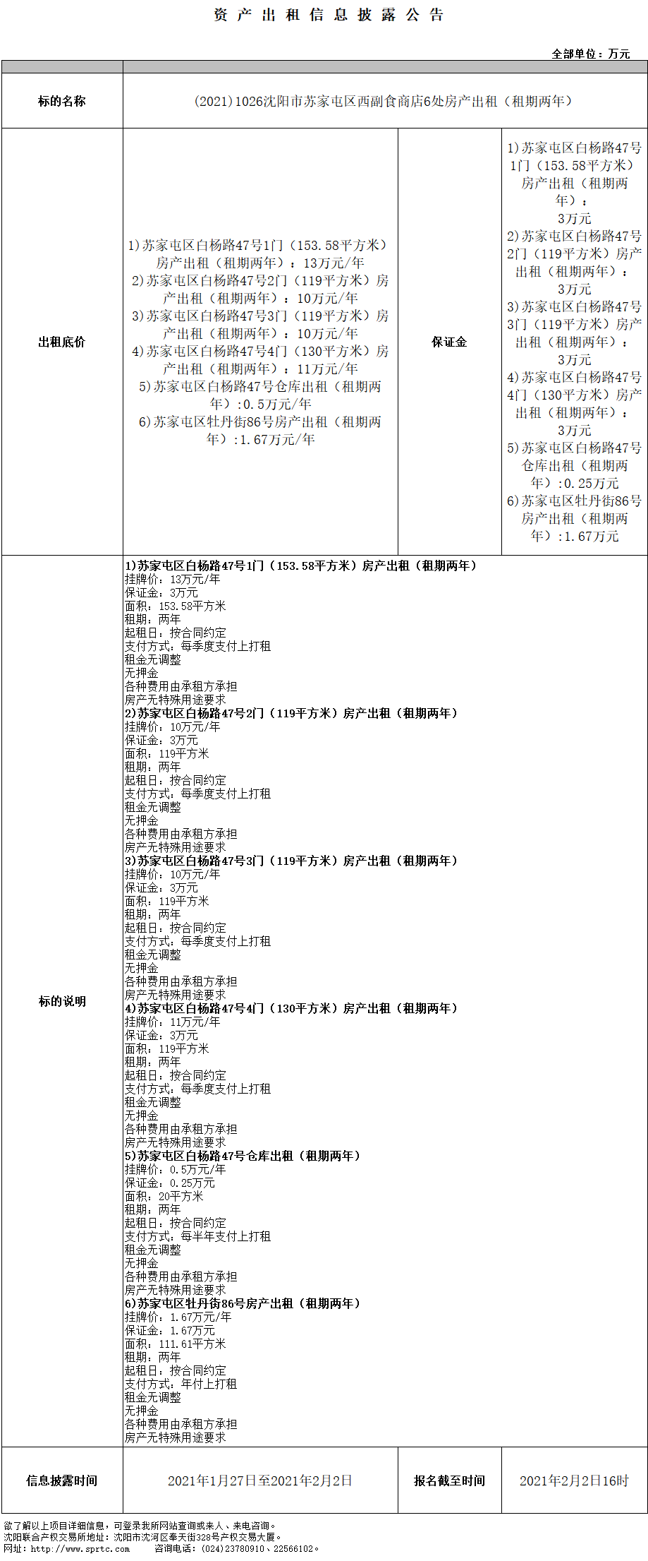 蘇家屯區(qū)白楊路47號(hào)1門(153.58平方米)房產(chǎn)出租(租期2年)