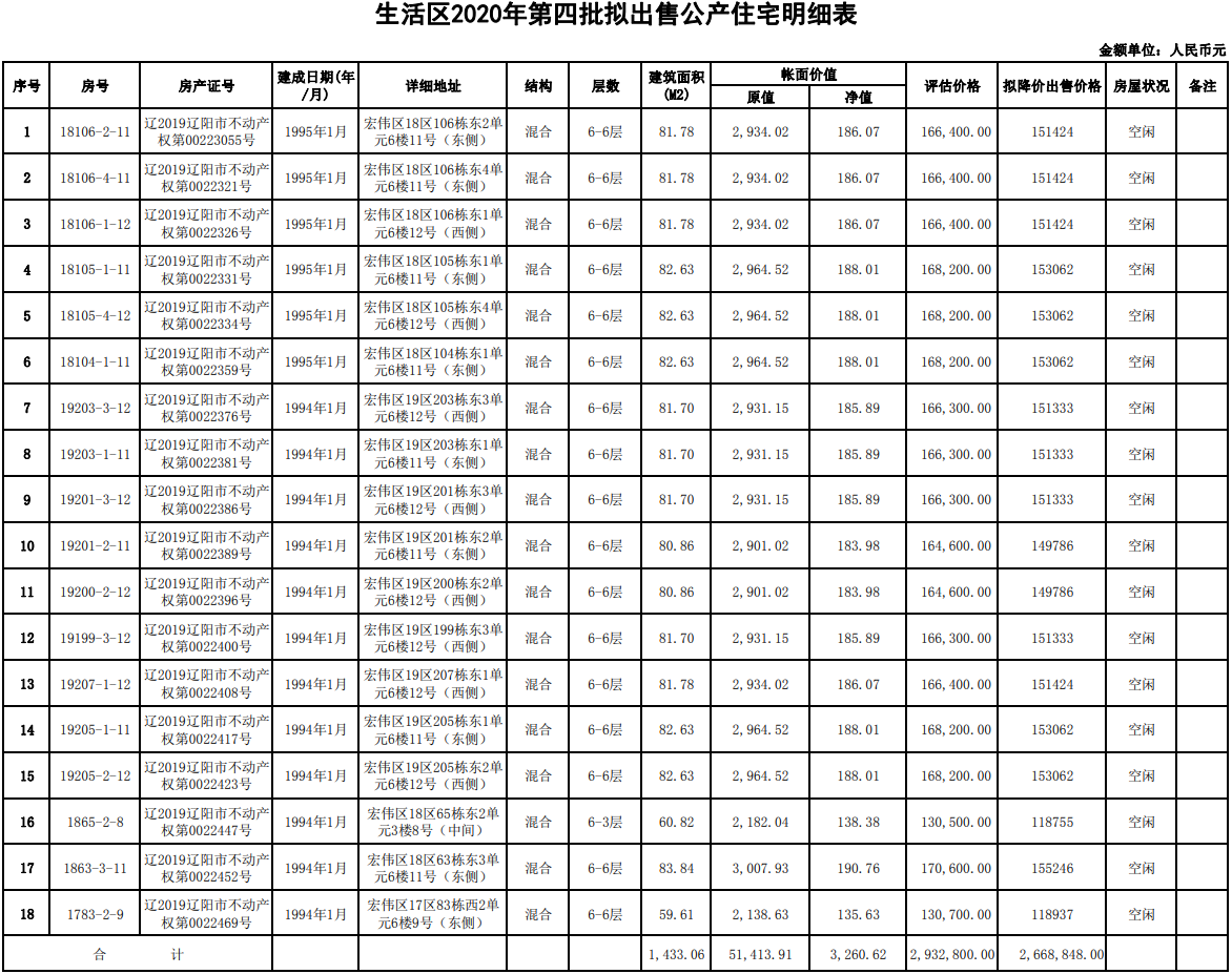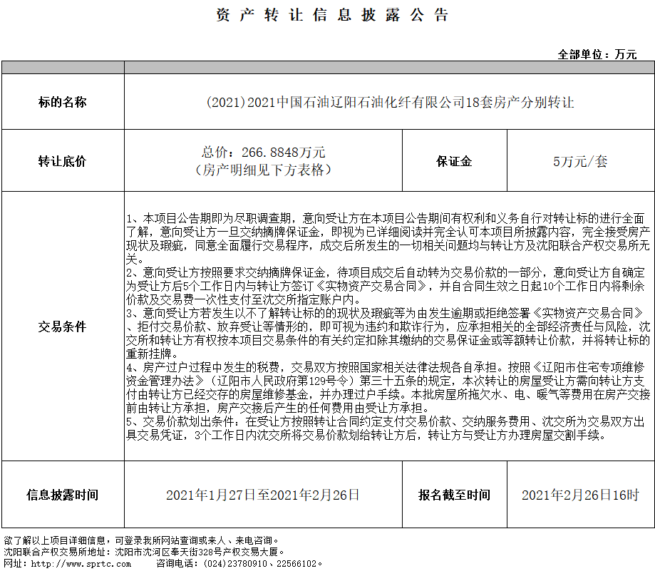 (2021)2021中國石油遼陽石油化纖有限公司18套房產(chǎn)分別轉讓