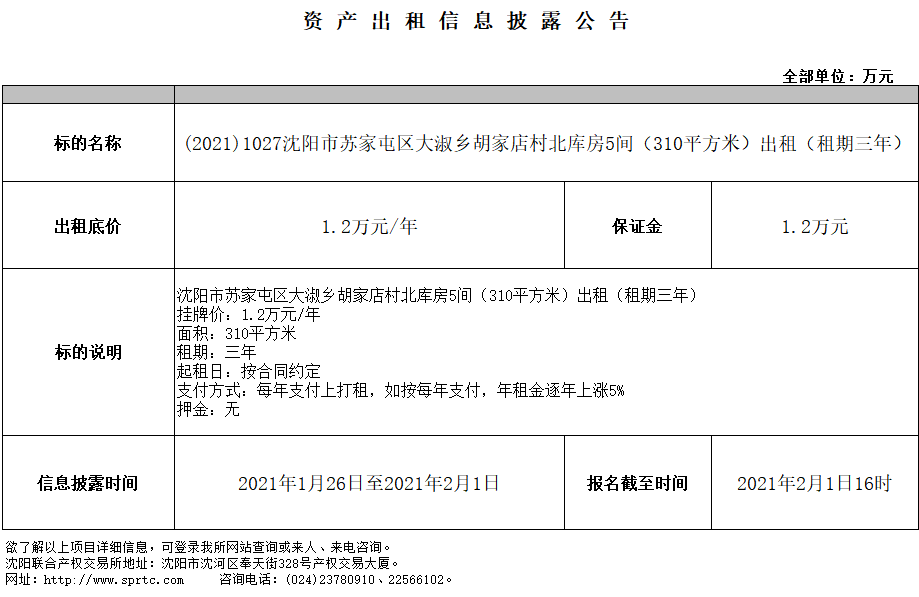 沈陽(yáng)市蘇家屯區(qū)大淑鄉(xiāng)胡家店村北庫(kù)房5間(310平方米)出租(租期三年)