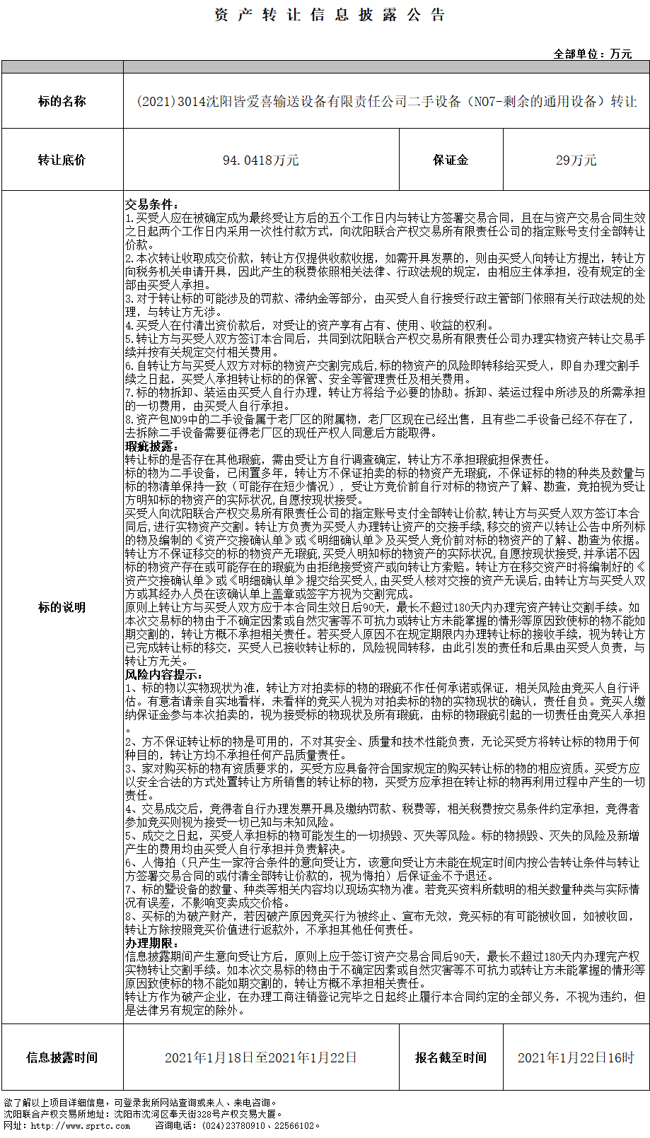 沈陽皆愛喜輸送設(shè)備有限責(zé)任公司二手設(shè)備轉(zhuǎn)讓(新 NO.7剩余的通用設(shè)備)