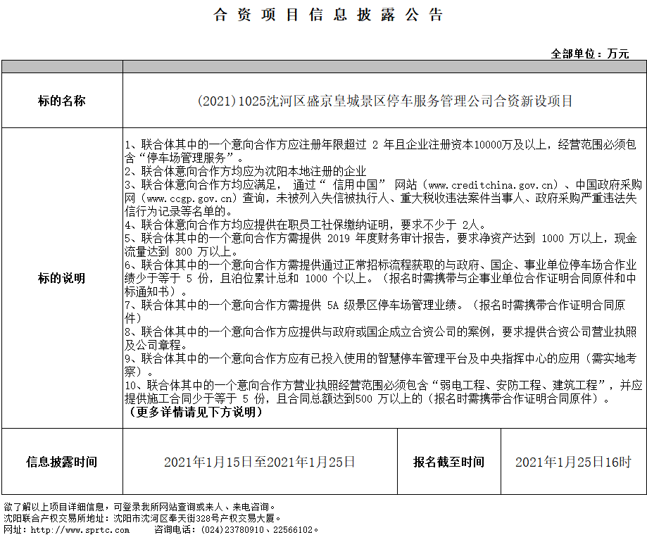 項(xiàng)目名稱:沈河區(qū)盛京皇城景區(qū)停車服務(wù)管理公司合資新設(shè)項(xiàng)目
