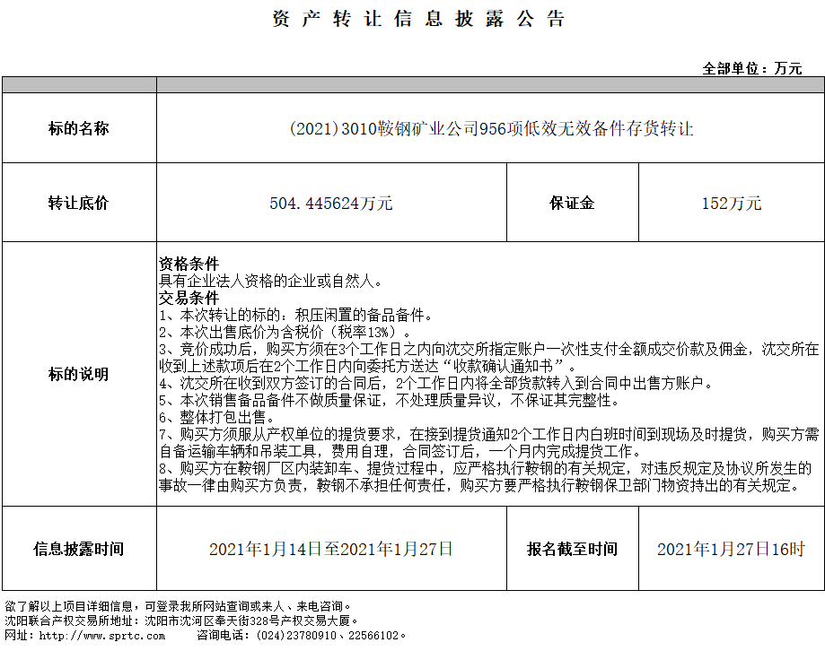 鞍鋼礦業(yè)公司956項(xiàng)低效無效備件存貨轉(zhuǎn)讓
