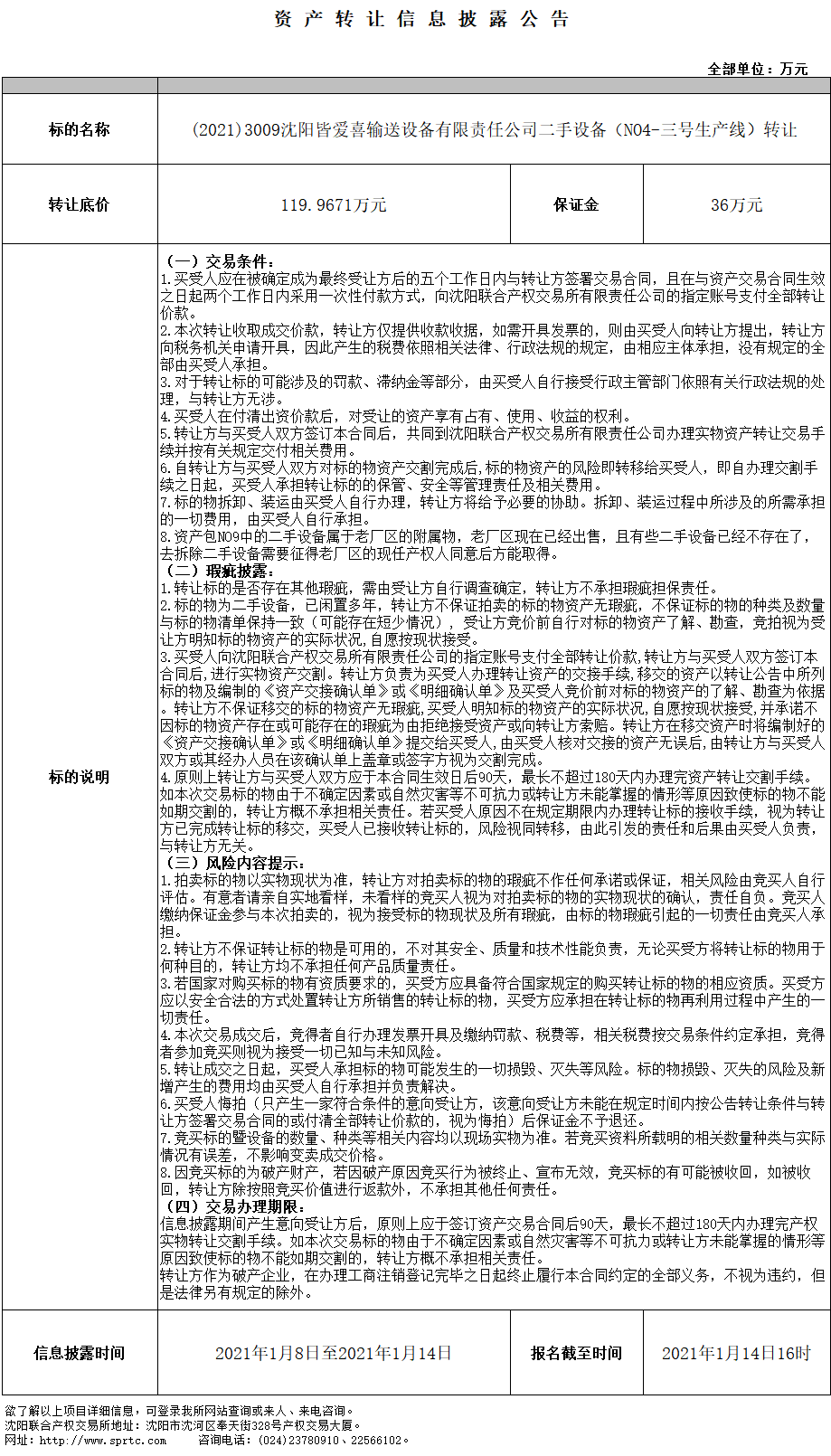 沈陽皆愛喜輸送設(shè)備有限責(zé)任公司二手設(shè)備(NO4生產(chǎn)線)