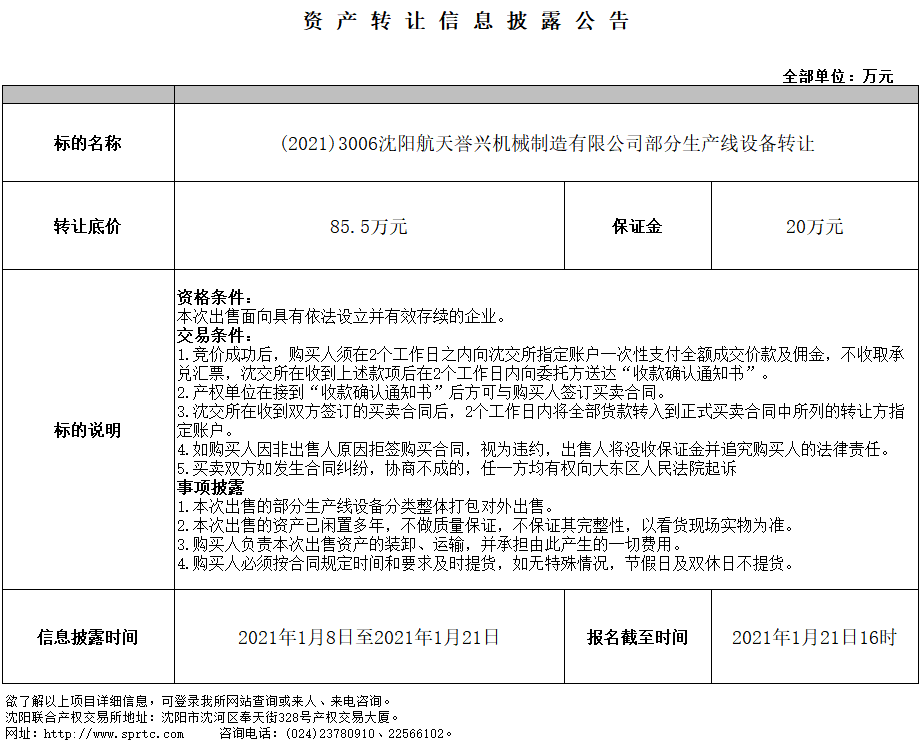 沈陽航天譽興機(jī)械制造有限公司轉(zhuǎn)讓公司部分生產(chǎn)線設(shè)備