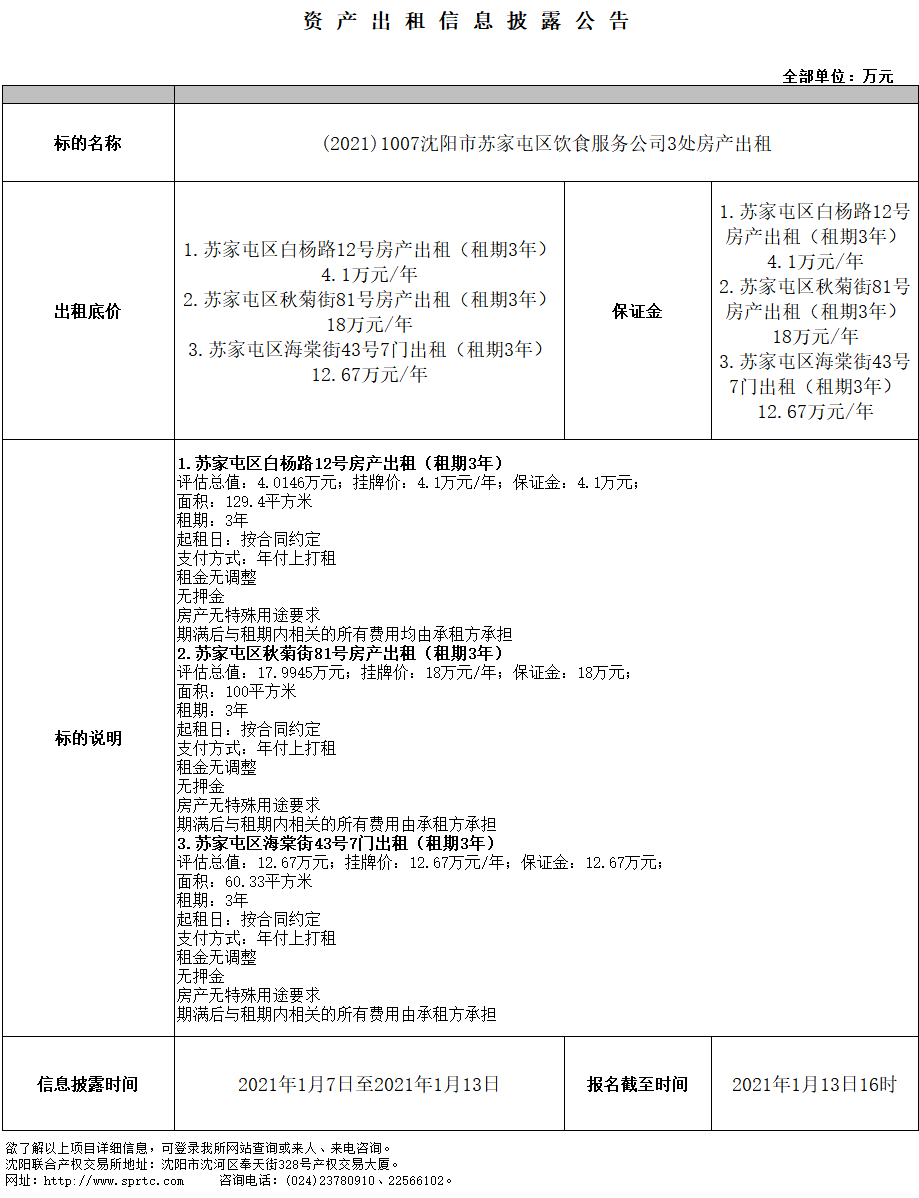 蘇家屯區(qū)白楊路12號房產出租(租期3年)