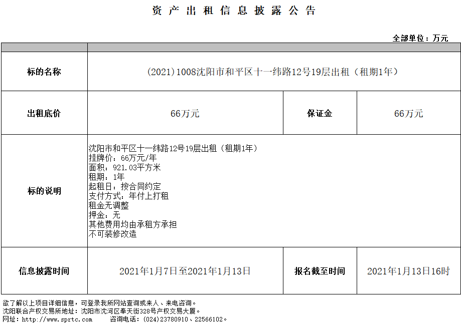 沈陽市和平區(qū)十一緯路12號19層出租(租期1年)