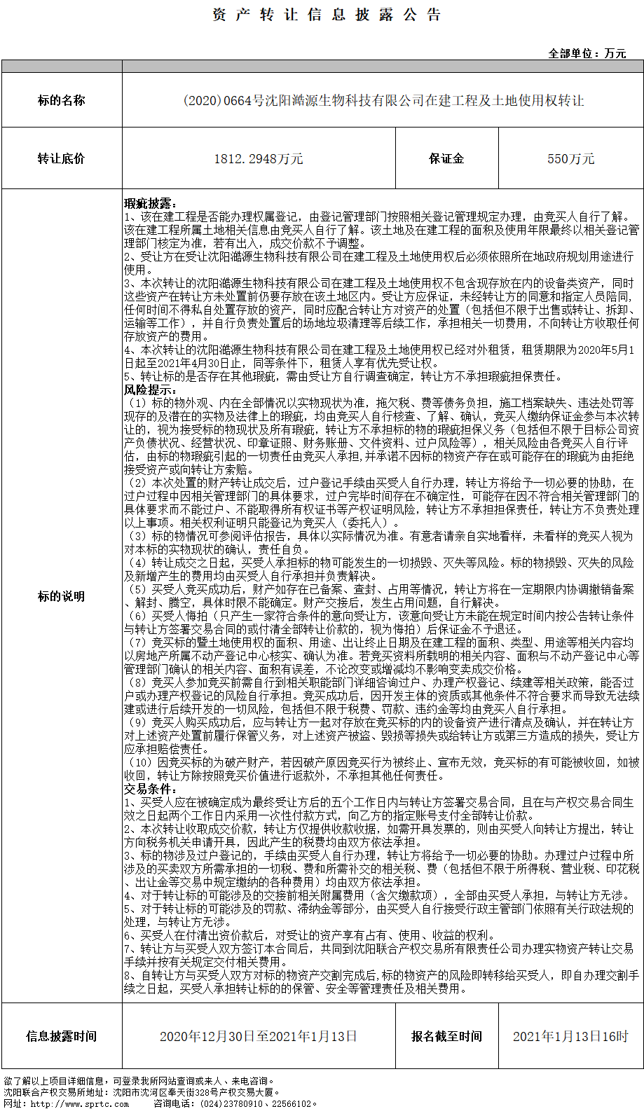 沈陽(yáng)澔源生物科技有限公司在建工程及土地使用權(quán)轉(zhuǎn)讓