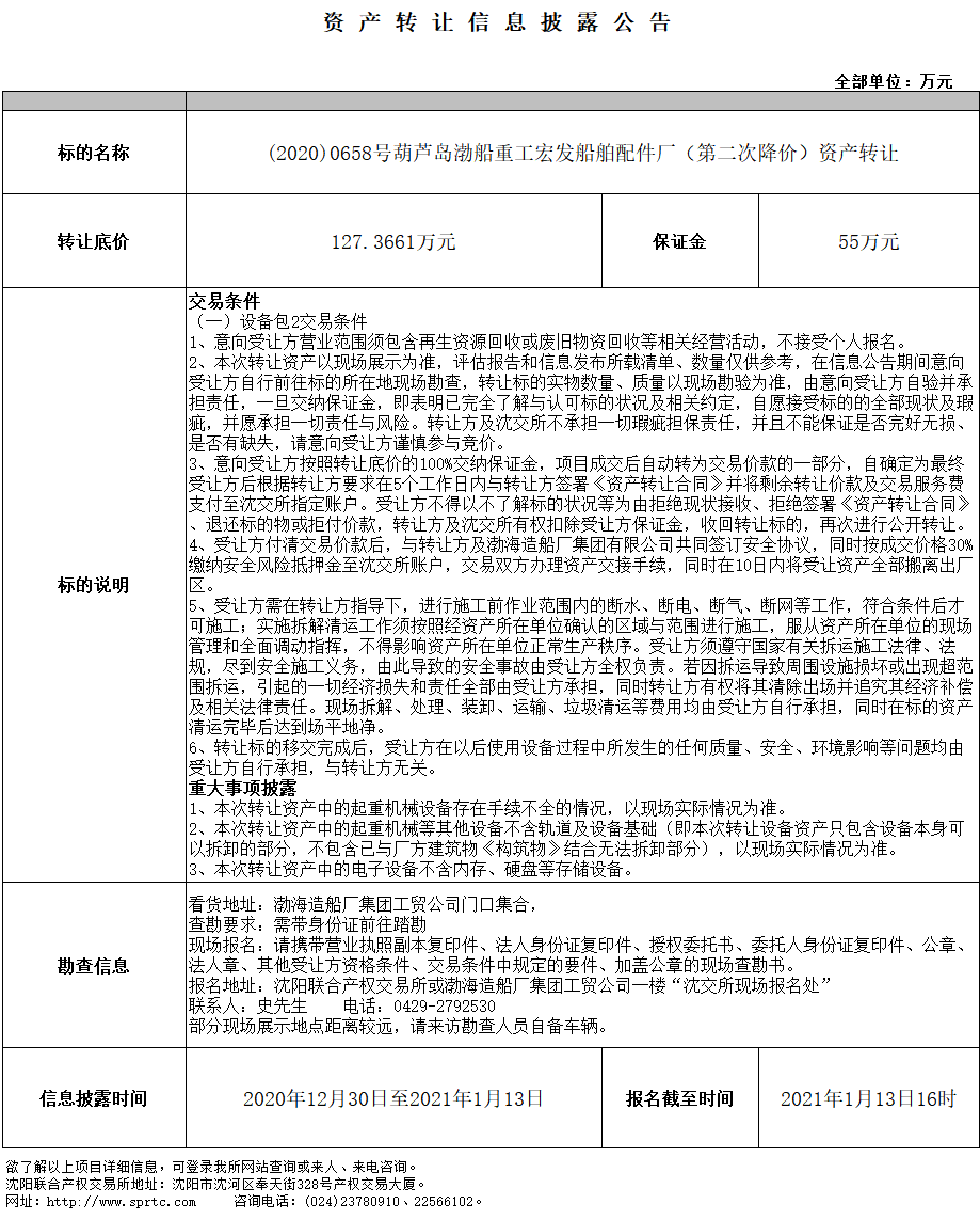 葫蘆島渤船重工宏發(fā)船舶配件廠機(jī)器及電子設(shè)備包二(第二次降價(jià))資產(chǎn)轉(zhuǎn)讓