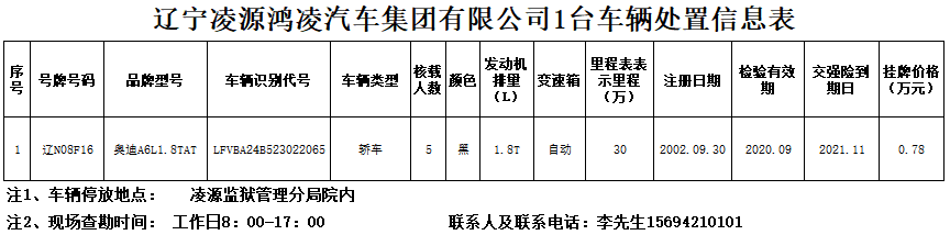 遼寧凌源鴻凌汽車集團公司1臺車輛第二次降價轉讓