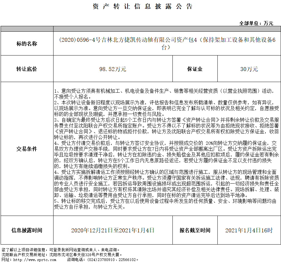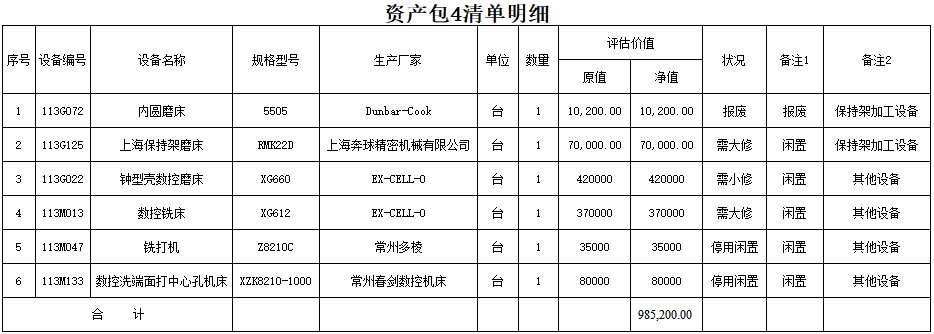 吉林北方捷凱傳動軸有限公司資產(chǎn)包4(保持架加工設備和其他設備6臺)