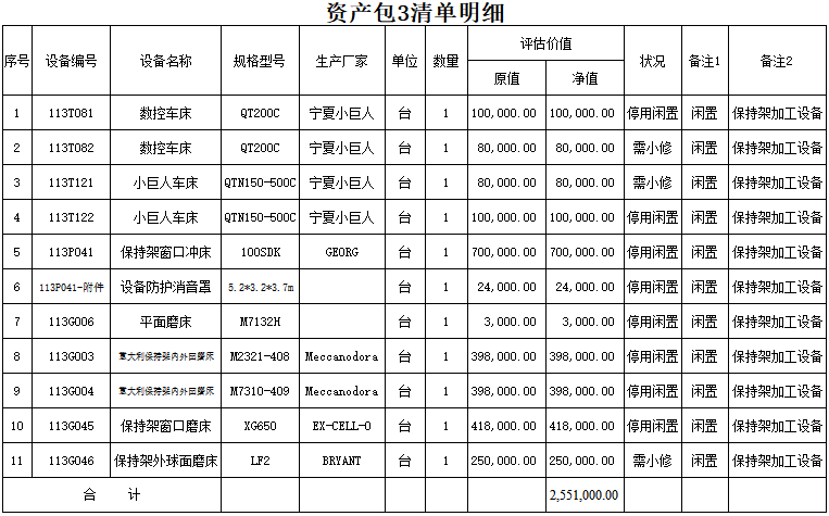 吉林北方捷凱傳動軸有限公司資產(chǎn)包3(保持架加工設(shè)備11臺)