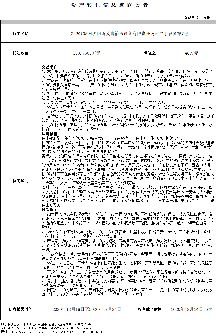 沈陽皆愛喜輸送設(shè)備有限責(zé)任公司二手設(shè)備( NO.7剩余的通用設(shè)備)