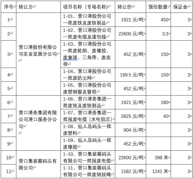1-10,營口集裝箱碼頭有限公司一批報廢電纜