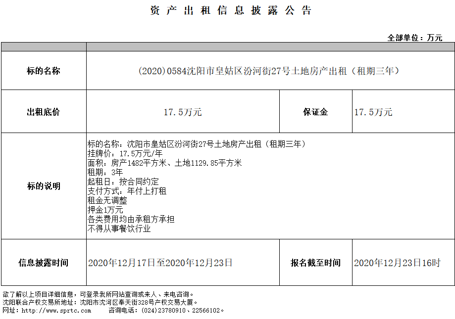 沈陽市皇姑區(qū)汾河街27號土地房產(chǎn)出租(租期三年)