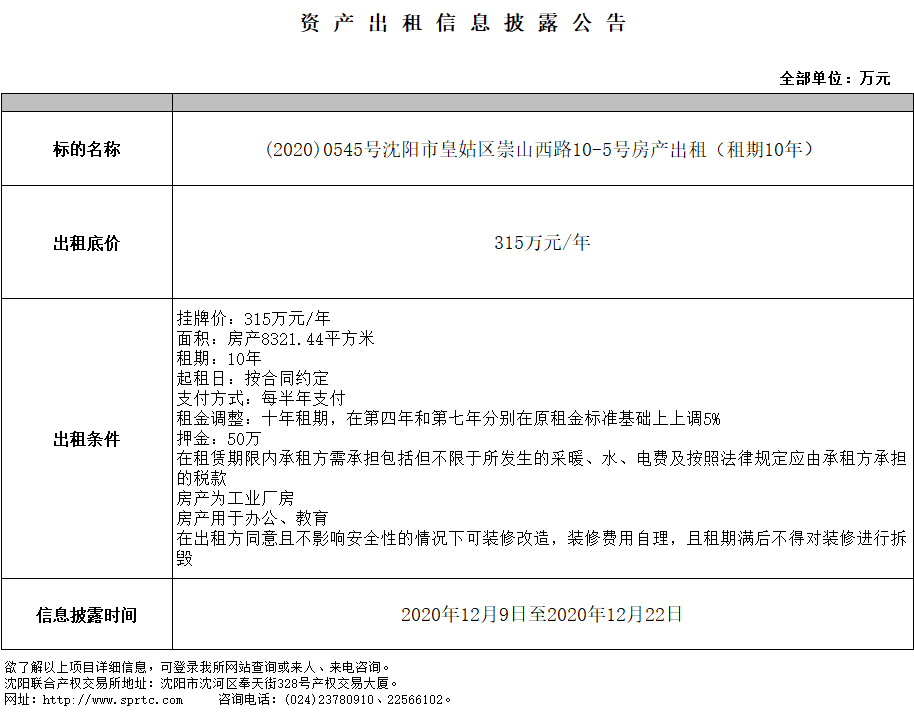 沈陽市皇姑區(qū)崇山西路10-5號房產(chǎn)出租(租期10年)